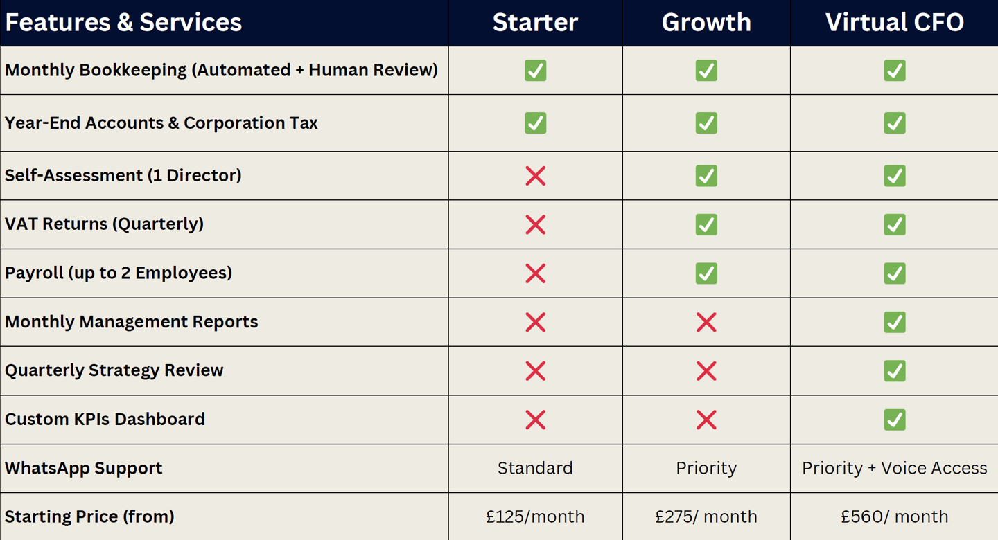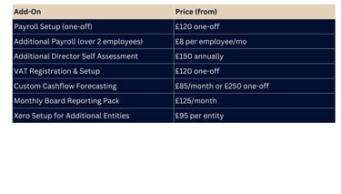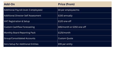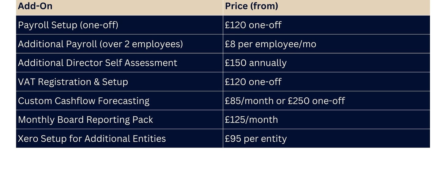 All bespoke services include setup, review, and support — fully integrated with your accounting system.