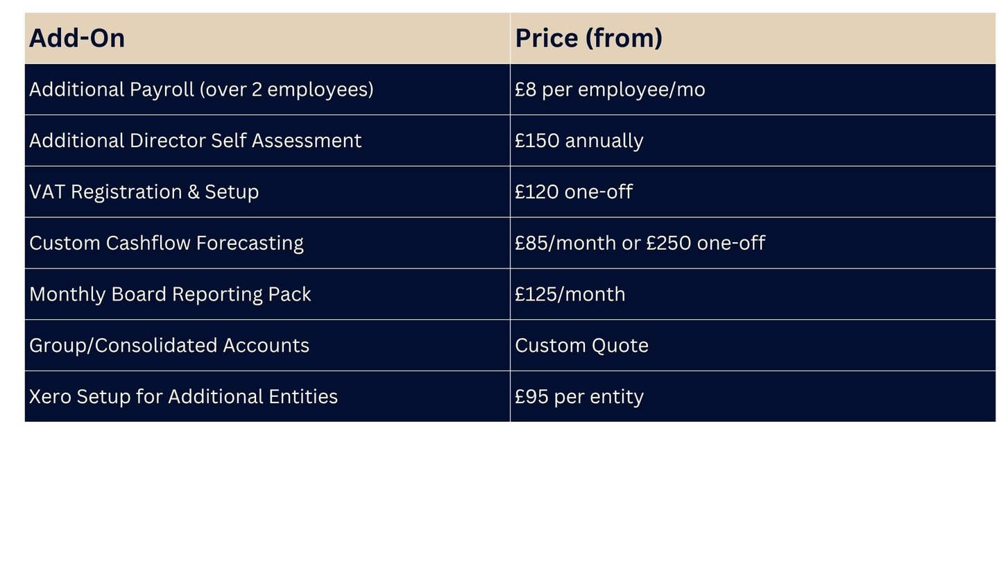 All packages include secure digital records, deadline reminders, and Xero cloud access.