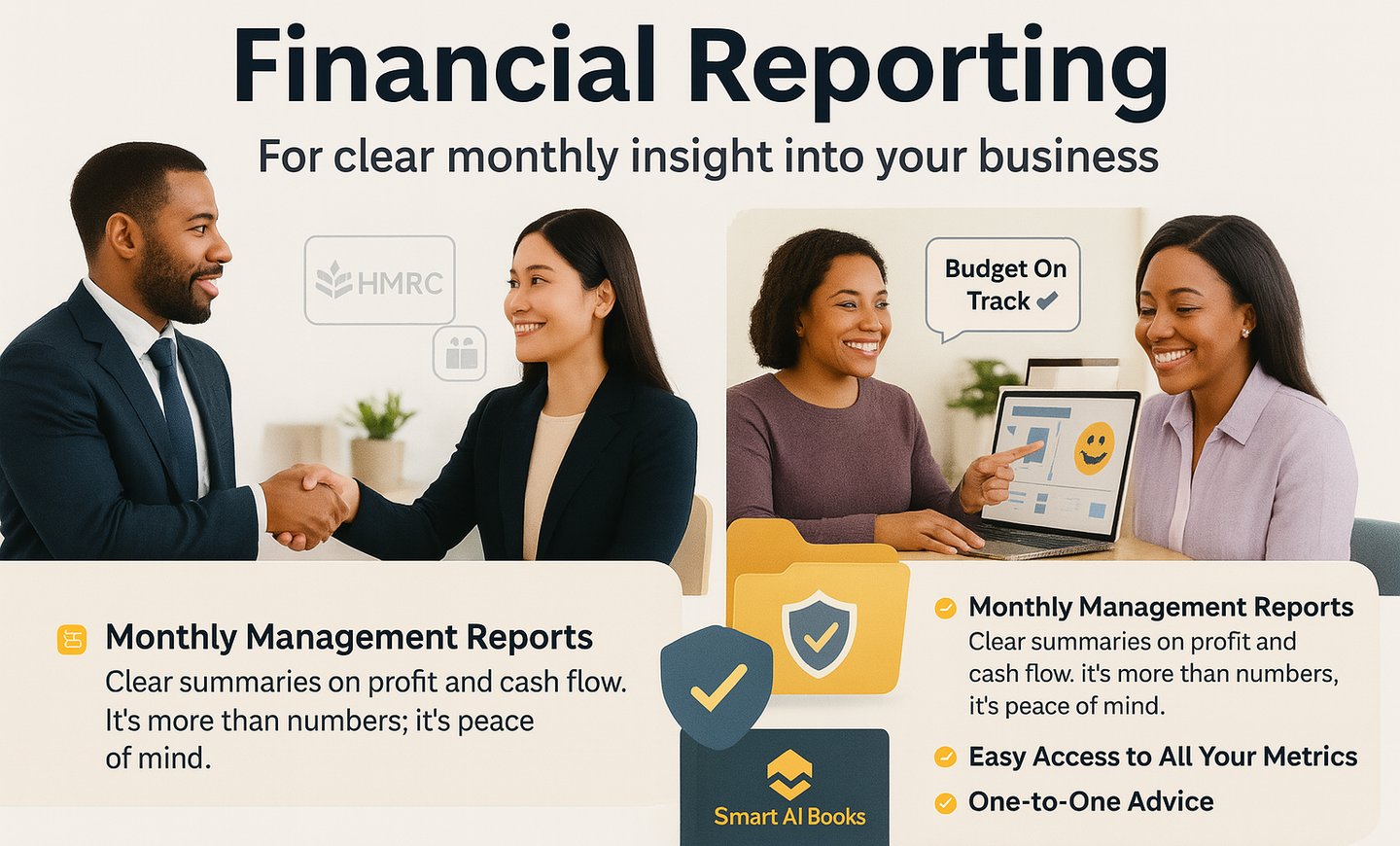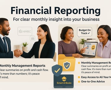 "Running a business is full-on. You’ve got customers to serve, staff to manage, and decisions to make. Our Financial Reporting service gives you crystal-clear summaries each month — showing where your money’s going, what’s driving your profit, and where to focus next".
