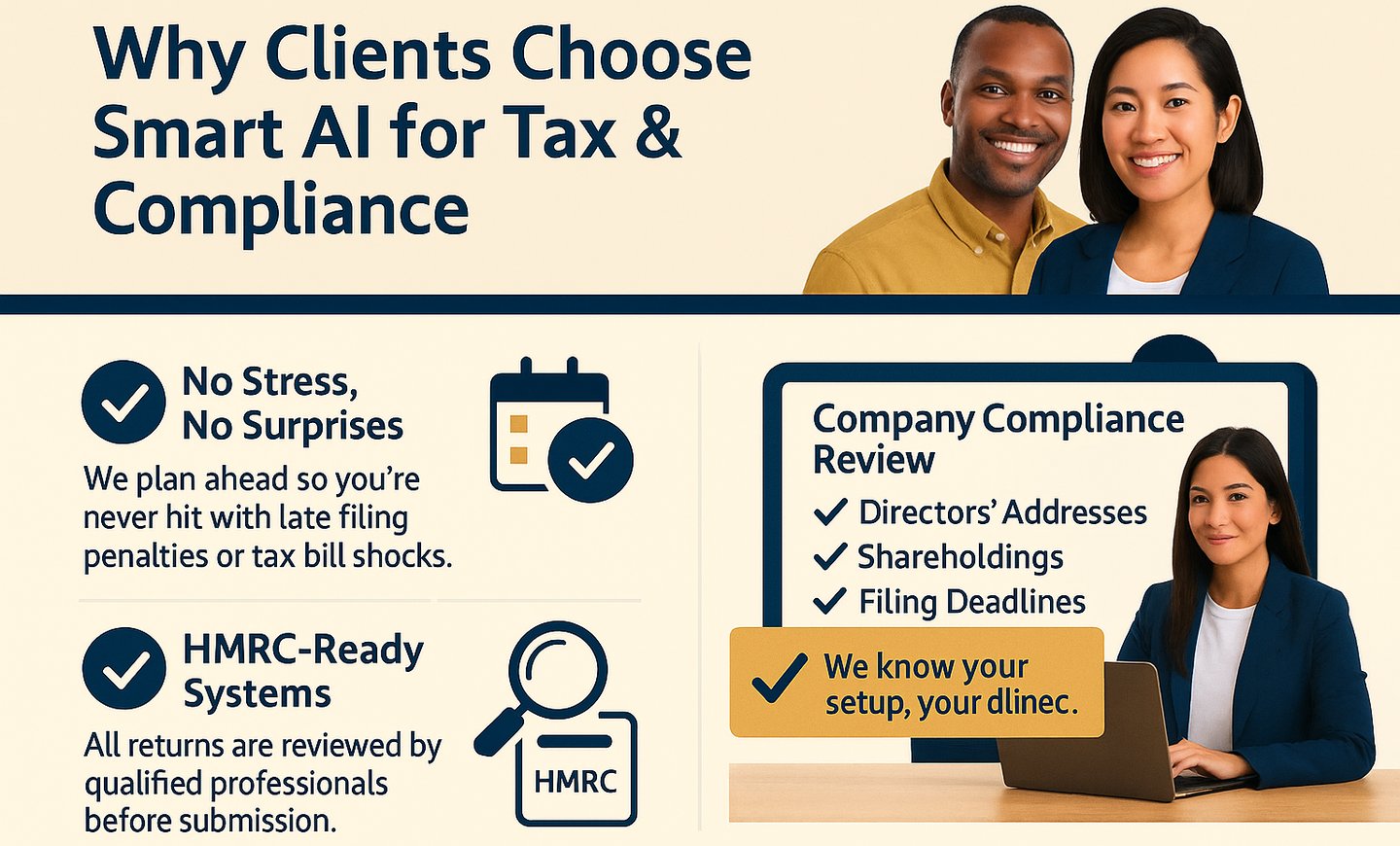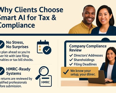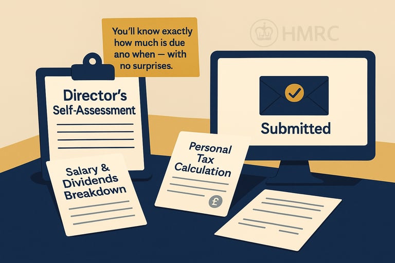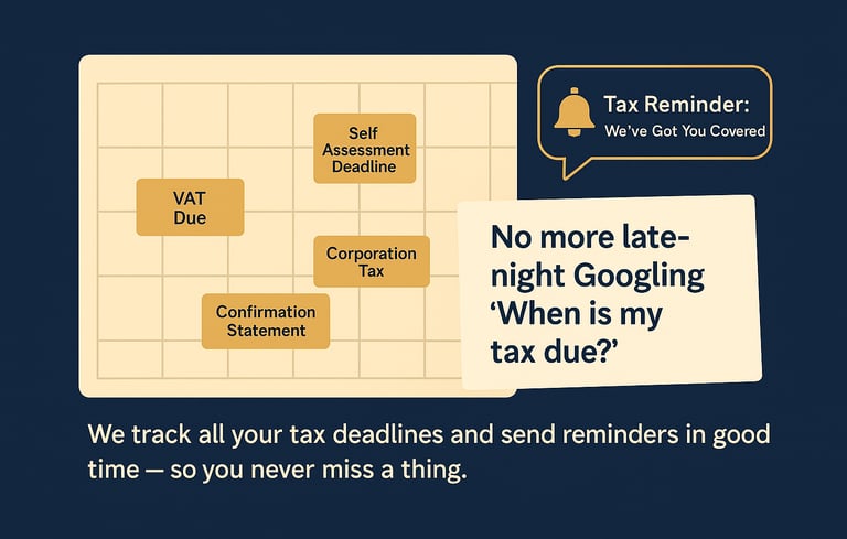 "Tax season doesn’t have to be stressful. You don’t need to become an expert in HMRC rules — that’s our job. We quietly stay on top of your deadlines, check everything’s in order, and submit your returns on time".