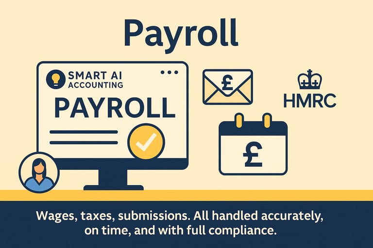 Running payroll shouldn’t be stressful. We’ll take care of your payroll submissions, payslips, and HMRC filings — so you stay compliant and your team gets paid on time.
